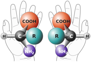 The term chiral /ˈkaɪrəl/ describes an object, especially a molecule, which has or produces a non-superposable mirror image of itself. In chemistry, such a molecule is called an enantiomer or is said to exhibit chirality or enantiomerism. The term "chiral" comes from the Greek word for the human hand, which itself exhibits such non-superimposeability of the left hand precisely over the right. Due to the opposition of the fingers and thumbs, no matter how the two hands are oriented, it is impossible for both hands to exactly coincide.[1] Helices, chiral characteristics (properties), chiral media,[2] order, and symmetry all relate to the concept of left- and right-handedness.[3][4]