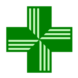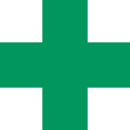 Green cross and Bowl of Hygieia used in Europe (with the exception of Germany and Austria) and India