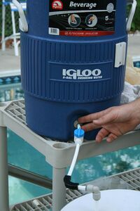 Coolers are often taken on picnics, and on vacation or holiday. Where summers are hot, they may also be used just for getting cold groceries home from the store, such as keeping ice cream from melting in a hot automobile. Even without adding ice, this can be helpful, particularly if the trip home will be lengthy. Some coolers have built-in cupholders in the lid.
