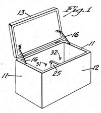 The portable ice chest was patented in the USA by Richard C. Laramy of Joliet, Illinois. On February 24, 1951, Laramy filed an application with the United States Patent Office for a portable ice chest (Serial No. 212,573).[2] The patent (#2,663,157) was issued December 22, 1953.
