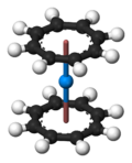 The simplest of the cyclopentadienyls are ThIII(C5H5)3 and ThIV(C5H5)4: many derivatives are known. The first (which has two forms, one purple and one green) is a rare example of thorium in the formal +3 oxidation state.[35][34] In the derivative [ThIII{η5-C5H3(SiMe3)2}3], a blue paramagnetic compound, the molecular geometry is trigonal planar around the thorium atom, which has a [Rn]6d1 configuration instead of the expected [Rn]5f1. [ThIII{η5-C5H3(SiMe3)2}3] can be reduced to the anion [ThII{η5-C5H3(SiMe3)2}3]−, in which thorium exhibits a rare +2 oxidation state.[36] The second is prepared by heating thorium tetrachloride with K(C5H5) under reflux in benzene: the four cyclopentadienyl rings are arranged tetrahedrally around the central thorium atom. The halide derivative [Th(C5H5)3Cl] can be made similarly by reducing the amount of K(C5H5) used (other univalent metal cyclopentadienyls can also be used), and the chlorine atom may be further replaced by other halogens or by alkoxy, alkyl, aryl, or BH4 groups. Of these, the alkyl and aryl derivatives have been investigated more deeply due to the insight they give regarding the nature of the Th–C σ bond.[35] Of special interest is the dimer [Th(η5-C5H5)2-μ-(η5,η1-C5H5)]2, where the two thorium atoms are bridged by two cyclopentadienyl rings, similarly to the structure of niobocene.[35]