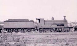 The tender took the form of a hollow box, low enough to avoid obscuring the driver's view when pushed. The body was carried on a pair of former carriage bogies, which provided the automatic brakes.[17] The body was filled with scrap steel to raise the weight of the vehicle to 35 1⁄2–37 1⁄2 tons; consequently increasing the available brake force.[15] Four lamp brackets were provided at each end to display locomotive headcode discs describing the class of train – when propelled, the tender obscured the front of the locomotive, and hence the headcode.