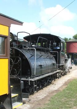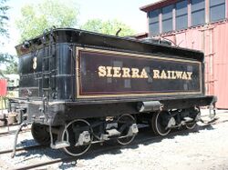 In the United States, tenders with sloped backs were often used for locomotives in yard switching service, because they greatly improved the engineer's ability to see behind the locomotive when switching cars. The reduced water capacity was not a problem, as the tender's water tank could be frequently refilled in the rail yard.[1] In the 1880s, numerous locomotive manufacturers were offering tenders with this design on small switcher locomotives.[8][9]