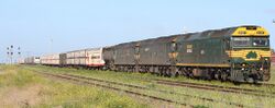 On British railways, brake tenders were low, heavy wagons used with early main line diesel locomotives. One or two were coupled in front or behind the locomotive to provide extra braking power when hauling unfitted or partially fitted freight trains (trains formed from wagons not fitted with automatic brakes).[14][15] They were required as the lighter weight of the new diesel locomotives, compared to steam, meant that they had comparable tractive effort (and thus train hauling capacity) but less braking ability.[16] Originally intended to be used in North East England, where they were usually propelled (pushed) by the locomotive, and later used in other regions. On the Southern Region they were normally hauled behind the locomotive.[14]