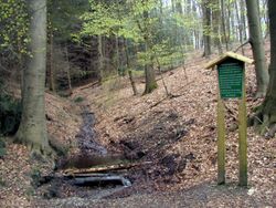 The headstreams in the valley do not carry water all year round; but have nonetheless carved out the V-shaped valley. In the post-glacial period the quantities of water flowing out of the Central Uplands were greater, so that the streams were able to cut down more strongly into the terrain than they are today.