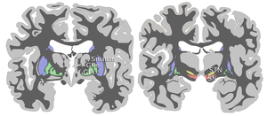 The pathophysiology of spasmodic torticollis is still relatively unknown. Spasmodic torticollis is considered neurochemical in nature, and does not result in structural neurodegenerative changes. Although no lesions are present in the basal ganglia in primary spasmodic torticollis, fMRI and PET studies have shown abnormalities of the basal ganglia and hyper activation of the cortical areas.[10] Studies have suggested that there is a functional imbalance in the striatal control of the globus pallidus, specifically the substantia nigra pars reticulata. The studies hypothesize the hyper activation of the cortical areas is due to reduced pallidal inhibition of the thalamus, leading to over activity of the medial and prefrontal cortical areas and under activity of the primary motor cortex during movement.[11] It has also been suggested that the functional imbalance is due to an imbalance of neurotransmitters such as dopamine, acetylcholine, and gamma-aminobutyric acid. These neurotransmitters are secreted from the basal ganglia, traveling to muscle groups in the neck. An increase in neurotransmitters causes spasms to occur in the neck, resulting in spasmodic torticollis.[9] Studies of local field potentials have also shown an increase of 4–10 Hz oscillatory activity in the globus pallidus internus during myoclonic episodes and an increase of 5–7 Hz activity in dystonic muscles when compared to other primary dystonias. This indicates that oscillatory activity in these frequency bands may be involved in the pathophysiology of spasmodic torticollis.[12]