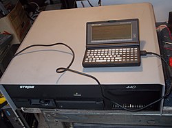 A Sage Stride 440 (with an HP 100LX on top, acting as a console terminal)