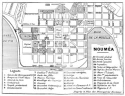 ![]() ![]() ![]() ![]() Top: View of Nouméa; Middle: Nouméa Cathedral, Nouméa beach; Bottom: Nouméa City Museum, Céleste fountain | |