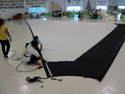 The term "crab claw sail" is also used for non-shunting sails that widen upwards.[19] The 'ōpe'a, the upper spar, is braced up so high that it is nearly parallel to the mast (as in a gunter rig). The paepae, the lower spar/boom, points well above the horizontal, unlike the boom of most gunter rigs and gaff rigs. The two spars can be brought together or pulled apart with control lines.[20] The mast is fixed and stayed.[18]