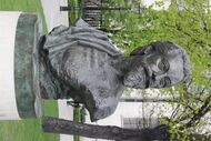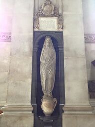 Donne died on 31 March 1631. He was buried in old St Paul's Cathedral,[18] where a memorial statue of him by Nicholas Stone was erected with a Latin epigraph probably composed by himself.[19] The memorial was one of the few to survive the Great Fire of London in 1666 and is now in St Paul's Cathedral. The statue was said by Izaac Walton in his biography, to have been modelled from the life by Donne to suggest his appearance at the resurrection. It started a vogue of such monuments during the 17th century.[20] In 2012, a bust of the poet by Nigel Boonham was unveiled outside in the cathedral churchyard.[21]