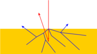 In addition to producing secondary electrons, primary electrons from the incident beam with sufficient energy to penetrate the resist can be multiply scattered over large distances from underlying films and/or the substrate. This leads to exposure of areas at a significant distance from the desired exposure location. For thicker resists, as the primary electrons move forward, they have an increasing opportunity to scatter laterally from the beam-defined location. This scattering is called forward scattering. Sometimes the primary electrons are scattered at angles exceeding 90 degrees, i.e., they no longer advance further into the resist. These electrons are called backscattered electrons and have the same effect as long-range flare in optical projection systems. A large enough dose of backscattered electrons can lead to complete exposure of resist over an area much larger than defined by the beam spot.