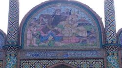 The poem begins with the kings of the Pishdadian dynasty. They defeat and subjugate the demonic divs. Tahmuras commanded the divs and became known as dīvband (binder of demons). Jamshid, the fourth king of the world, ruled over both angels and divs, and served as a high priest of Ahura Mazda (Hormozd). Like his father, he slayed many divs, however, spared some under the condition they teach him new valuable arts, such as writing in different languages.[65] After a just reign over hundreds of years, Jamshid grew haughty and claimed, because of his wealth and power, divinity for himself. Whereupon God withdraws his blessings from him, and his people get unsatisfied with their king. With the ceasing influence of God, the devil gains power and aids Zahhak to usurp the throne.[65] Jamshid dies sawn in two by two demons. Tricked by Ahriman (or Iblis), Zahhak grew two snakes on his shoulders and becomes the demonic serpent-king.[66] The King Kay Kāvus fails to conquer the legendary Mazandaran, the land of divs and gets captured.[67] To save his king, Rustam takes a journey and fights through seven trials. Divs are among the common enemies Rustam faces, the last one the Div-e Sepid, the demonic king of Mazandaran.