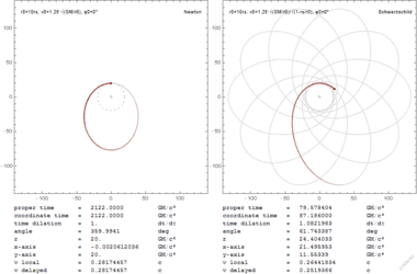 The orbits of a test particle of infinitesimal mass [math]\displaystyle{ m }[/math] about the central mass [math]\displaystyle{ M }[/math] is given by the equation of motion