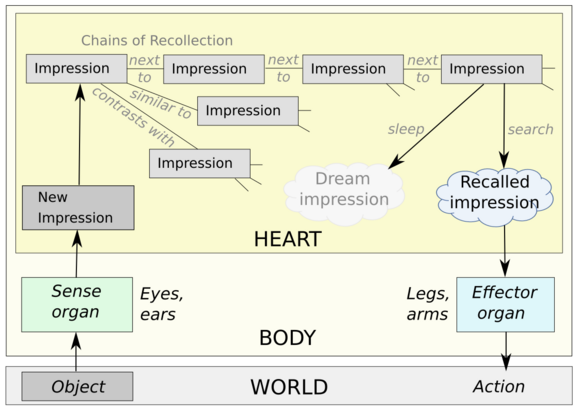 Aristotle reinforced this focus on the heart which originated in Egypt. He believed the heart to be in control of mental processes, and looked on the brain, due to its inert nature, as a mechanism for cooling the heat generated by the heart.[8][9] He drew his conclusions based on the empirical study of animals. He found that while their brains were cold to the touch and that such contact did not trigger any movements, the heart was warm and active, accelerating and slowing dependent on mood.[8][9] Such beliefs were upheld by many for years to come, persisting through the Middle Ages and the Renaissance period until they began to falter in the 17th century due to further research.[9] The influence of Aristotle in the development of neuropsychology is evident within language used in modern day, since we "follow our hearts" and "learn by the heart."[9]