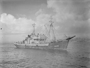 Minesweeping made significant advancements during World War II. Combatant nations quickly adapted ships to the task of minesweeping, including Australia's 35 civilian ships that became auxiliary minesweepers.[6] Both Allied and Axis countries made heavy use of minesweepers throughout the war. Historian Gordon Williamson wrote that "Germany's minesweepers alone formed a massive proportion of its total strength, and are very much the unsung heroes of the Kriegsmarine."[7] Naval mines remained a threat even after the war ended, and minesweeping crews were still active after VJ Day.[8] After the Second World War, Allied countries worked on new classes of minesweepers ranging from 120-ton designs for clearing estuaries to 735-ton oceangoing vessels.[9] The United States Navy even used specialized mechanized landing craft to sweep shallow harbors in and around North Korea.[10]