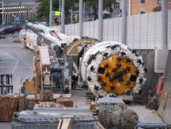 An earth pressure balance TBM known as Bertha with a bore diameter of 17.45 meters (57.3 ft) was produced by Hitachi Zosen Corporation in 2013.[40] It was delivered to Seattle, Washington (state) , for its Highway 99 tunnel project.[41] The machine began operating in July 2013, but stalled in December 2013 and required substantial repairs that halted the machine until January 2016.[42] Bertha completed boring the tunnel on April 4, 2017.[43]