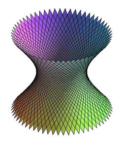 In mathematics, a quadric or quadric hypersurface is the subspace of N-dimensional space defined by a polynomial equation of degree 2 over a field. Quadrics are fundamental examples in algebraic geometry. The theory is simplified by working in projective space rather than affine space. An example is the quadric surface