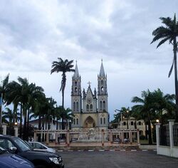 Notable buildings include the Cathedral of Santa Isabel, of the Roman Catholic Archdiocese of Malabo. It is a church in the Gothic Revival style, built between 1897 and 1916. Its architect was Luis Segarra Llairadó, paid by contributions from the government of Spain and the donations of the faithful. It has two spires 40 meters high. In January 2020 a fire due to an electrical failure caused the calcination of part of its structure, currently there are work ongoing for an early restoration in November 2021. [17]