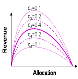 This is shown in Figure 6. If the uncertainty will increase, the envelope of uncertainty will become more inclusive, to include instances of the total revenue function that, for the specific allocation, yields a revenue smaller than the critical revenue.