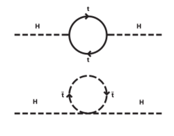 where [math]\displaystyle{ m_t }[/math] is the top mass and [math]\displaystyle{ m_{\tilde{t}} }[/math] is the mass of the top squark. This result can be interpreted as the RG running of the Higgs quartic coupling from the scale of supersymmetry to the top mass—however since the top squark mass should be relatively close to the top mass, this is usually a fairly modest contribution and increases the Higgs mass to roughly the LEP II bound of 114 GeV before the top squark becomes too heavy.