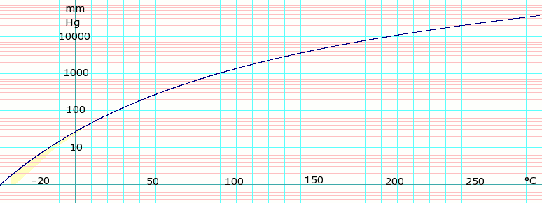 | T in °C | –36.7(s) | –11.5(s) | 7.6 | 26.1 | 60.6 | 80.1 | 103.8 | 142.5 | 178.8 | 221.5 | 272.3 | — | |