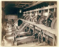 Where stamp mills were used to crush gold-bearing ore to fines, a part of the extraction process involved the use of mercury-wetted copper plates, over which the crushed fines were washed. A periodic scraping and re-mercurizing of the plate resulted in amalgam for further processing.