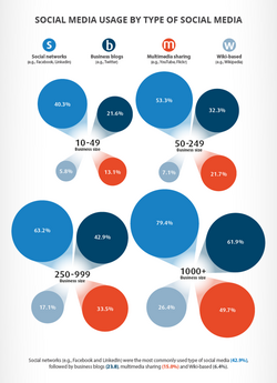 Social networking websites allow individuals, businesses and other organizations to interact with one another and build relationships and communities online. When companies join these social channels, consumers can interact with them directly.[3] That interaction can be more personal to users than traditional methods of outbound marketing and advertising.[4] Social networking sites act as word of mouth or more precisely, e-word of mouth. The Internet's ability to reach billions across the globe has given online word of mouth a powerful voice and far reach. The ability to rapidly change buying patterns and product or service acquisition and activity to a growing number of consumers is defined as an influence network.[5] Social networking sites and blogs allow followers to "retweet" or "repost" comments made by others about a product being promoted, which occurs quite frequently on some social media sites.[6] By repeating the message, the user's connections are able to see the message, therefore reaching more people. Because the information about the product is being put out there and is getting repeated, more traffic is brought to the product/company.[4]