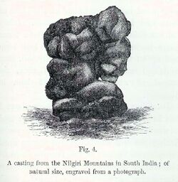 An illustration of an earthworm casting taken from Charles Darwin's publication on the movement of organic matter in soils through the ecological activities of worms.[28]