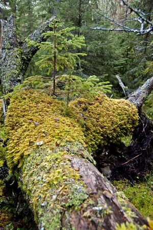 Fallen logs are critical components of the nutrient cycle in terrestrial forests. Nurse logs form habitats for other creatures that decompose the materials and recycle the nutrients back into production.[35]