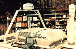 The first coordinated storm chasing activity sponsored by institutions was undertaken as part of the Alberta Hail Studies project beginning in 1969.[14] Vehicles[15] were outfitted with various meteorological instrumentation and hail-catching apparatus and were directed into suspected hail regions of thunderstorms by a controller at a radar site.[16] The controller communicated with the vehicles by radio.