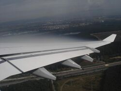 - Spoilers on the upper surface to disrupt the lift and to provide additional traction to an aircraft that has just landed but is still moving.