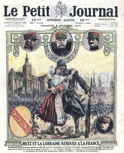 In French foreign policy, the demand for the return of Alsace and Lorraine faded in importance after 1880 with the decline of the monarchist element. When the World War broke out in 1914, recovery of the two lost provinces became the top French war goal.[9]