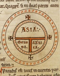 12th-century T and O map representing the inhabited world as described by Isidore of Seville in his