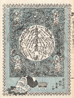 The mandala in Nichiren Buddhism is a Script error: The function "transl" does not exist. (文字曼陀羅), which is a paper hanging scroll or wooden tablet whose inscription consists of Chinese characters and medieval-Sanskrit script representing elements of the Buddha's enlightenment, protective Buddhist deities, and certain Buddhist concepts. Called the Gohonzon, it was originally inscribed by Nichiren, the founder of this branch of Japanese Buddhism, during the late 13th Century. The Gohonzon is the primary object of veneration in some Nichiren schools and the only one in others, which consider it to be the supreme object of worship as the embodiment of the supreme Dharma and Nichiren's inner enlightenment. The seven characters Namu Myōhō Renge Kyō, considered to be the name of the supreme Dharma, as well as the invocation that believers chant, are written down the center of all Nichiren-sect Gohonzons, whose appearance may otherwise vary depending on the particular school and other factors.[citation needed]