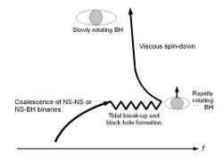 Spin-down of rapidly spinning stellar mass black holes in their lowest energy state takes tens of seconds against an inner disk, representing the remnant debris of the merger of two neutron stars, the break-up of a neutron star around a companion black hole or formed in core-collapse of a massive star. Forced turbulence in the inner disk stimulates the creation of magnetic fields and multipole mass-moments, thereby opening radiation channels in radio, neutrinos and, mostly, in gravitational waves with distinctive chirps shown in the diagram [20] with the creation of astronomical amounts of Bekenstein-Hawking entropy.[21][22][23]
