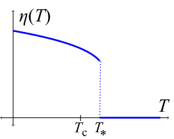 At temperatures below the transition temperature, [math]\displaystyle{ T\lt T_* }[/math], the order parameter is given by