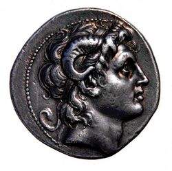 The reasons behind the name "Two-Horned" are somewhat obscure: the scholar al-Tabari (839–923 CE) held it was because he went from one extremity ("horn") of the world to the other,[17] but it may ultimately derive from the image of Alexander wearing the horns of the ram-god Zeus-Ammon, as popularised on coins throughout the Hellenistic Near East.[18] The wall Dhul-Qarnayn builds on his northern journey may have reflected a distant knowledge of the Great Wall of China (the 12th century scholar al-Idrisi drew a map for Roger of Sicily showing the "Land of Gog and Magog" in Mongolia), or of various Sassanid Persian walls built in the Caspian area against the northern barbarians, or a conflation of the two.[19]