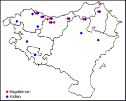 In the Epipaleolithic period, as the Last Ice Age came to an end, Magdalenian culture experienced a regionalization all around Europe, producing new localized cultural complexes. In the case of the Basque Country and the Franco-Cantabrian region as a whole, this product was Azilian, that in alter period would incorporate the geometric microliths associated with Tardenoisian and related cultures.[16]