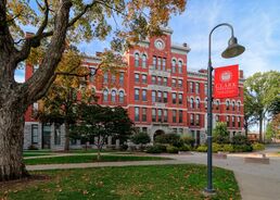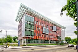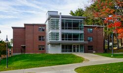 Summer 2016 saw the completion of a new Alumni and Student Engagement Center building, extending the campus across Main Street. The facility is a mixed-use building containing administrative offices, lecture halls, meeting rooms, and some retail space, and features a modern architectural look and a roof-top solar array.[37]
