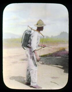 The first pesticide used for indoor residual spraying was DDT.[250] Although it was initially used exclusively to combat malaria, its use quickly spread to agriculture. In time, pest control, rather than disease control, came to dominate DDT use, and this large-scale agricultural use led to the evolution of pesticide-resistant mosquitoes in many regions. The DDT resistance shown by Anopheles mosquitoes can be compared to antibiotic resistance shown by bacteria. During the 1960s, awareness of the negative consequences of its indiscriminate use increased, ultimately leading to bans on agricultural applications of DDT in many countries in the 1970s.[88] Before DDT, malaria was successfully eliminated or controlled in tropical areas like Brazil and Egypt by removing or poisoning the breeding grounds of the mosquitoes or the aquatic habitats of the larval stages, for example by applying the highly toxic arsenic compound Paris Green to places with standing water.[251]
