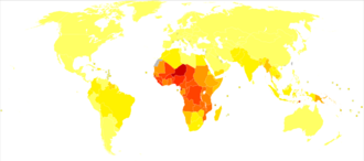 Malaria is presently endemic in a broad band around the equator, in areas of the Americas, many parts of Asia, and much of Africa; in Sub-Saharan Africa, 85–90% of malaria fatalities occur.[199] An estimate for 2009 reported that countries with the highest death rate per 100,000 of population were Ivory Coast (86.15), Angola (56.93) and Burkina Faso (50.66).[200] A 2010 estimate indicated the deadliest countries per population were Burkina Faso, Mozambique and Mali.[201] The Malaria Atlas Project aims to map global levels of malaria, providing a way to determine the global spatial limits of the disease and to assess disease burden.[202][203] This effort led to the publication of a map of P. falciparum endemicity in 2010 and an update in 2019.[204][205][206] As of 2021, 84 countries have endemic malaria.[5]