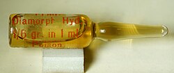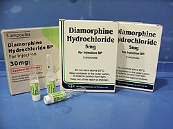 From Handwiki Heroin, also known as diacetylmorphine and diamorphine among other names,[1] is a morphinan opioid substance synthesized from the dried latex of the opium poppy; it is mainly used as a recreational drug for its euphoric effects. Heroin is used medically in several countries to relieve pain, such as during childbirth or a heart attack, as well as in opioid replacement therapy.[2][3][4] Medical-grade diamorphine is used as a pure hydrochloride salt. Various white and brown powders sold illegally around the world as heroin are routinely diluted with cutting agents. Black tar heroin is a variable admixture of morphine derivatives—predominantly 6-MAM (6-monoacetylmorphine), which is the result of crude acetylation during clandestine production of street heroin.[5]