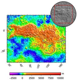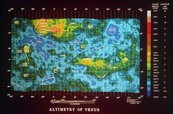 Based on altimeter data from the Pioneer Venus Orbiter probe, supported by Magellan data, the topography of the planet is divided into three provinces: lowlands, deposition plains, and highlands.