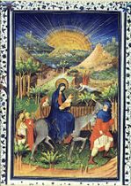 Light is also present in other areas of the Christian religion: the Conception of Jesus in Mary is realized in the form of a ray of light, as seen in numerous representations of the Annunciation;[59] likewise, it represents the Incarnation, as expressed by Pseudo-Saint Bernard: "as the splendor of the sun passes through glass without breaking it and penetrates its solidity in its impalpable subtlety, without opening it when it enters and without breaking it when it leaves, so the Word God penetrates Mary's womb and comes forth from her womb intact."[68] This symbolism of light passing through glass is the same concept that was applied to Gothic stained glass, where light symbolizes divine omnipresence.[68] Another symbolism related to light is that which identifies Jesus with the Sun and Mary as the Dawn that precedes him.[63] In addition to all this, in Christianity light can also signify truth, virtue and salvation. In patristics, light is a symbol of eternity and the heavenly world: according to Saint Bernard, souls separated from the body will be "plunged into an immense ocean of eternal light and luminous eternity". On the other hand, in ancient Christianity, baptism was initially called "illumination".[69]