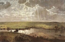 In the field of landscape painting, John Constable and Joseph Mallord William Turner stood out, heirs of the rich tradition of English landscape painting of the 18th century. Constable was a pioneer in capturing atmospheric phenomena. Kenneth Clark, in The Art of Landscape, credited him with the invention of the "chiaroscuro of nature", which would be expressed in two ways: on the one hand, the contrast of light and shade that for Constable would be essential in any landscape painting and, on the other, the sparkling effects of dew and breeze that the British painter was able to capture so masterfully on his canvases, with a technique of interrupted strokes and touches of pure white made with a palette knife.[141] Constable once said that "the form of an object is indifferent; light, shadow and perspective will always make it beautiful".[142]