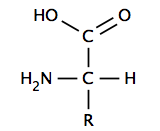 An α-amino acid has a central carbon (the α or alpha carbon) that is covalently bonded to a carboxyl group (thus they are carboxylic acids), an amino group, a hydrogen atom and a variable group. The variable group, also called the R group or side chain, determines the identity and many of the properties of a specific amino acid. In glycine, the simplest amino acid, the R group is a hydrogen atom, but in all other amino acids it is contains one or more carbon atoms bonded to hydrogens, and may contain other elements such as sulfur, oxygen or nitrogen. With the exception of glycine, naturally occurring amino acids are chiral and almost invariably occur in the L-configuration. Peptidoglycan, found in some bacterial cell walls contains some D-amino acids. At physiological pH, typically around 7, free amino acids exist in a charged form, where the acidic carboxyl group (-COOH) loses a proton (-COO−) and the basic amine group (-NH2) gains a proton (-NH+3). The entire molecule has a net neutral charge and is a zwitterion, with the exception of amino acids with basic or acidic side chains. Aspartic acid, for example, possesses one protonated amine and two deprotonated carboxyl groups, for a net charge of −1 at physiological pH.