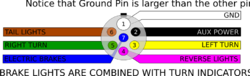 This contact is not as common, but is compatible with the 4-pin connector in the way that a towing vehicle with this connector can be connected to a trailer with the 4-pin flat plug.