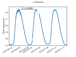 Light curve of κ Pavonis, a Type II cepheid, recorded by NASA's Transiting Exoplanet Survey Satellite (TESS)