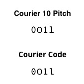 Courier Code[11] is a variant of Courier 10 Pitch BT for use in programming. The zero is dotted to better distinguish it from the capital O and the lowercase L has been altered to better distinguish it from the number one. The leading has been increased slightly as well.