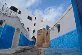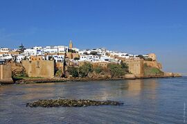 In the 10th century the Umayyads of Cordoba, or their Zenata Berber allies in the region, founded a ribat or fortified monastery/outpost in this area, to defend against the Barghawata Berbers who had established a Kharijite state to the south.[17] This ribat was most likely on the same site as the current Kasbah of the Udayas, but its location has not been confirmed by historians.[17] Around 1030, a new town called Salā (the present Salé) was founded on the opposite side of the river (the north side) by the Banu 'Ashara family.[18][19]